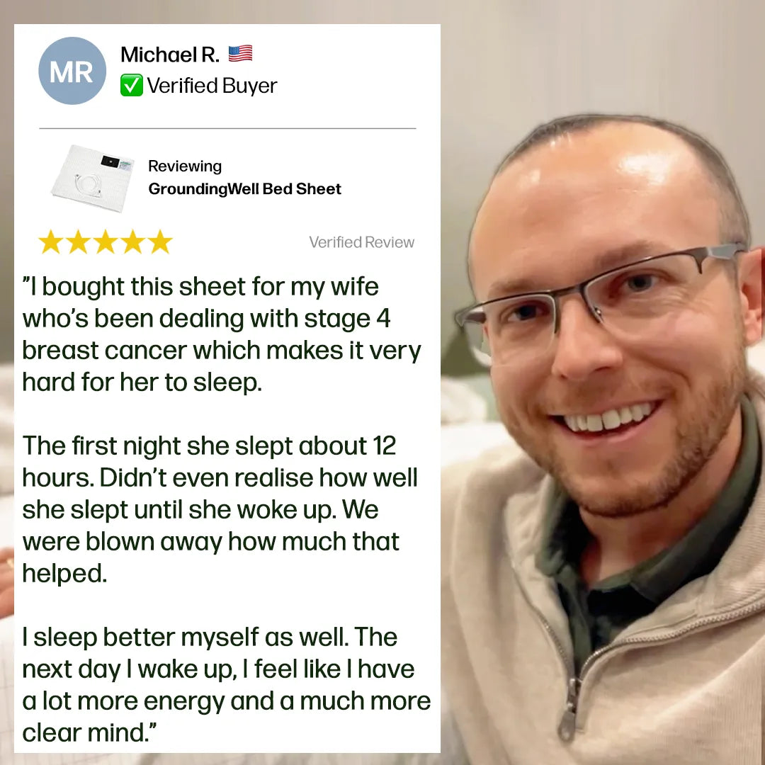 After using the GroundingWell Bedsheet for the first time, her knee pain disappeared overnight!