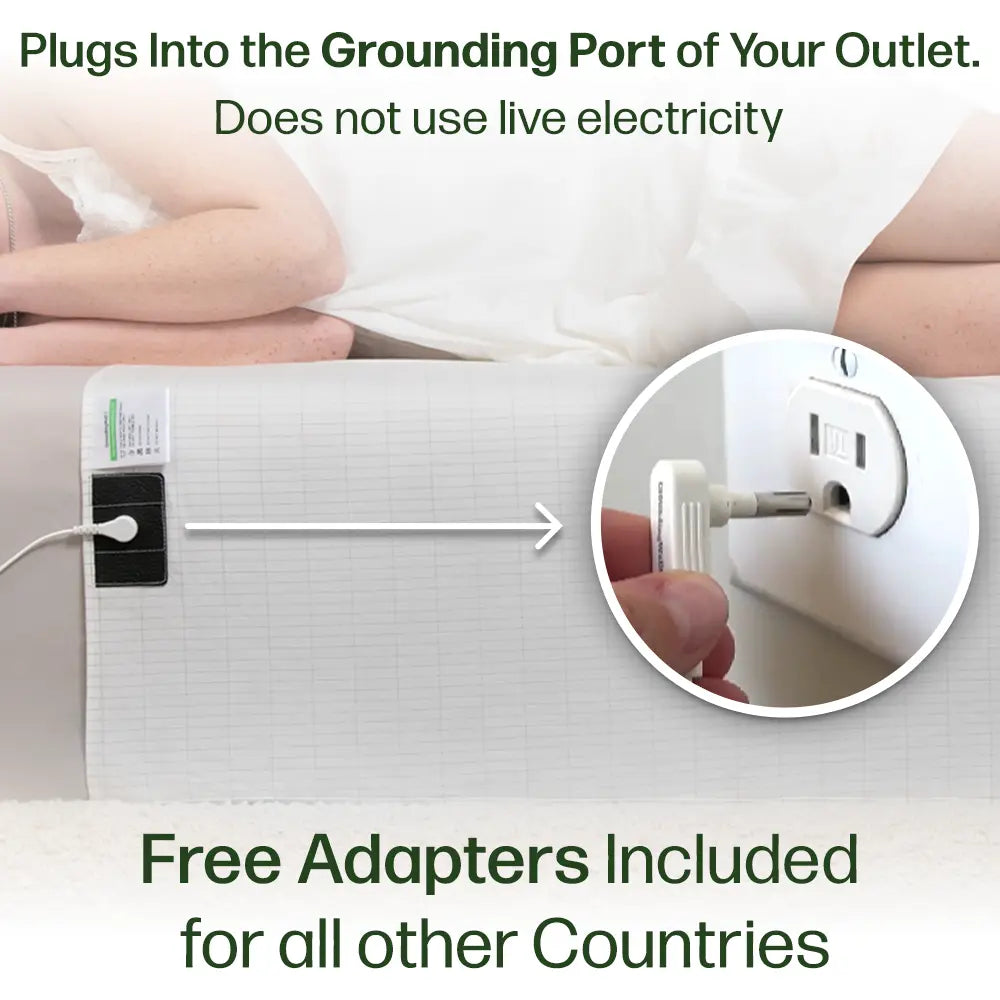 The GroundingWell Bedsheet transfers the Earth's electrons into your bed through the grounding cable in your wall. This allows you to receive the nurturing benefits of grounding during the comfort of your night's sleep.